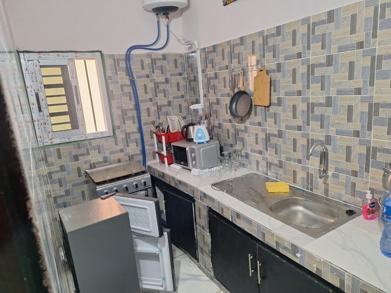 * Cuisine équipée ( ustensiles de cuisine, réfrigérateur , cuisinière, micro onde …)