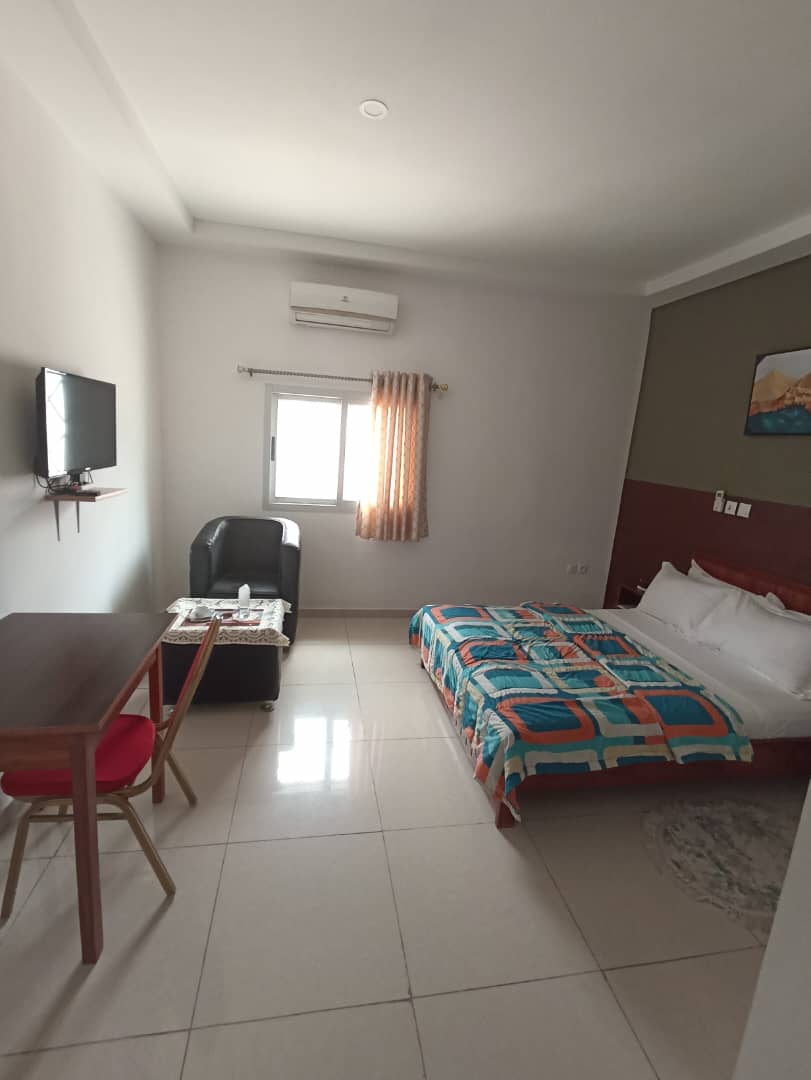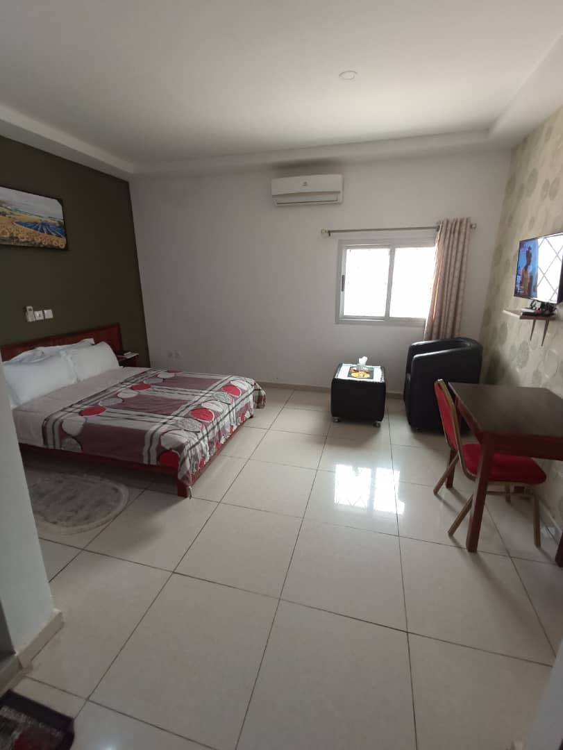 Accès WIFI haut-débit TV avec canal Petit déjeuner offert Hôtel accessible en fauteuil roulant Un room service Télévision satellite Espace événementiel et de congrès Personnel polyglotte (français, anglais ) Environnement sans fumée à 100 % Accès INTERNET par FIBRE OPTIQUE, avec ou sans fil, partout dans l’établissement Bureau de travail avec chaise de travail confortable Papier toilette Serviettes Toilettes Service de ménage quotidien Groupe électrogène Accès facile Agent de sécurité Suppresseur d'eau Femme de ménage Sécurité 24H/24 gardiens et caméras de surveillances 24H/24 Ecran plasma Split Bureau de chambreChambre confort « + Petit Déjeuner » Suite