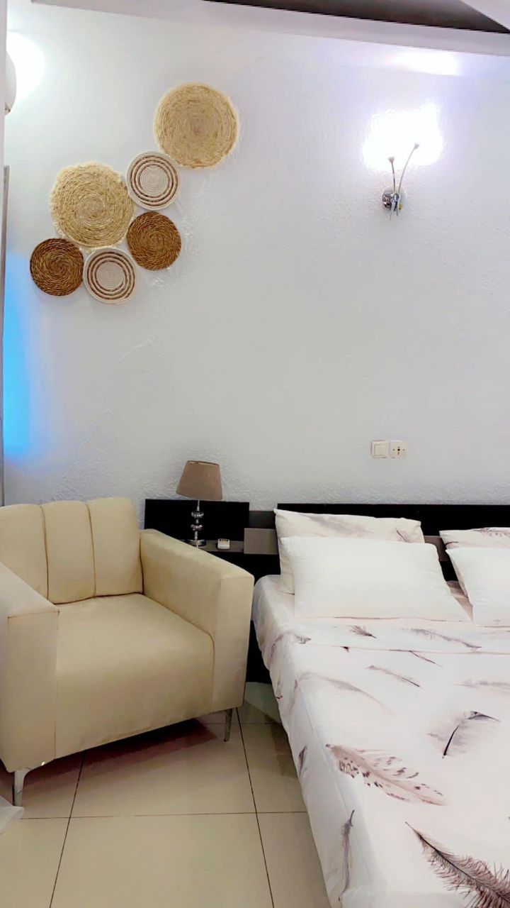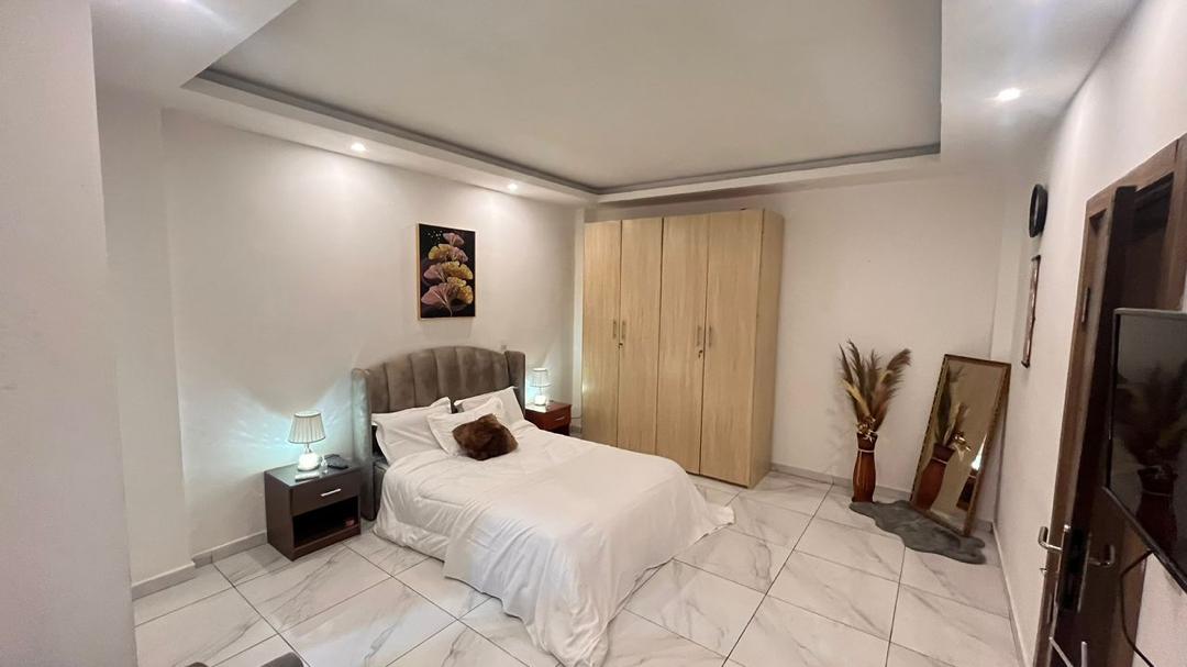 Appartement meublé, très cosy et lumineux, sis à la Riviera Mbadon, au 2ème étage dans un joli immeuble neuf, avec toutes les commodités :